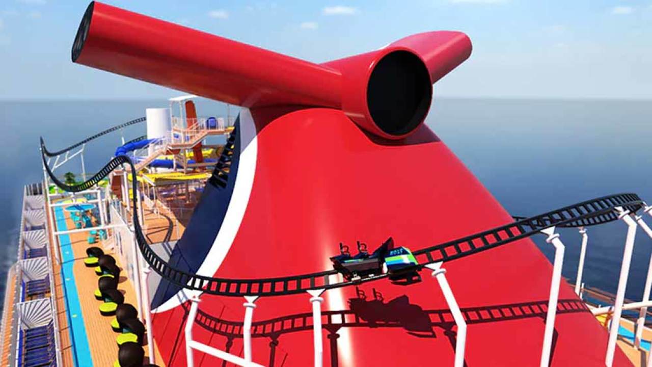 Carnival is set to feature the first rollercoaster at sea when it launches it's latest ship Carnival Mardi Gras in 2020. Nicknamed "BOLT Ultimate Sea Coaster", the all electric roller coaster will take two riders in a motorcycle like vehicle along a 50m track above the ocean.